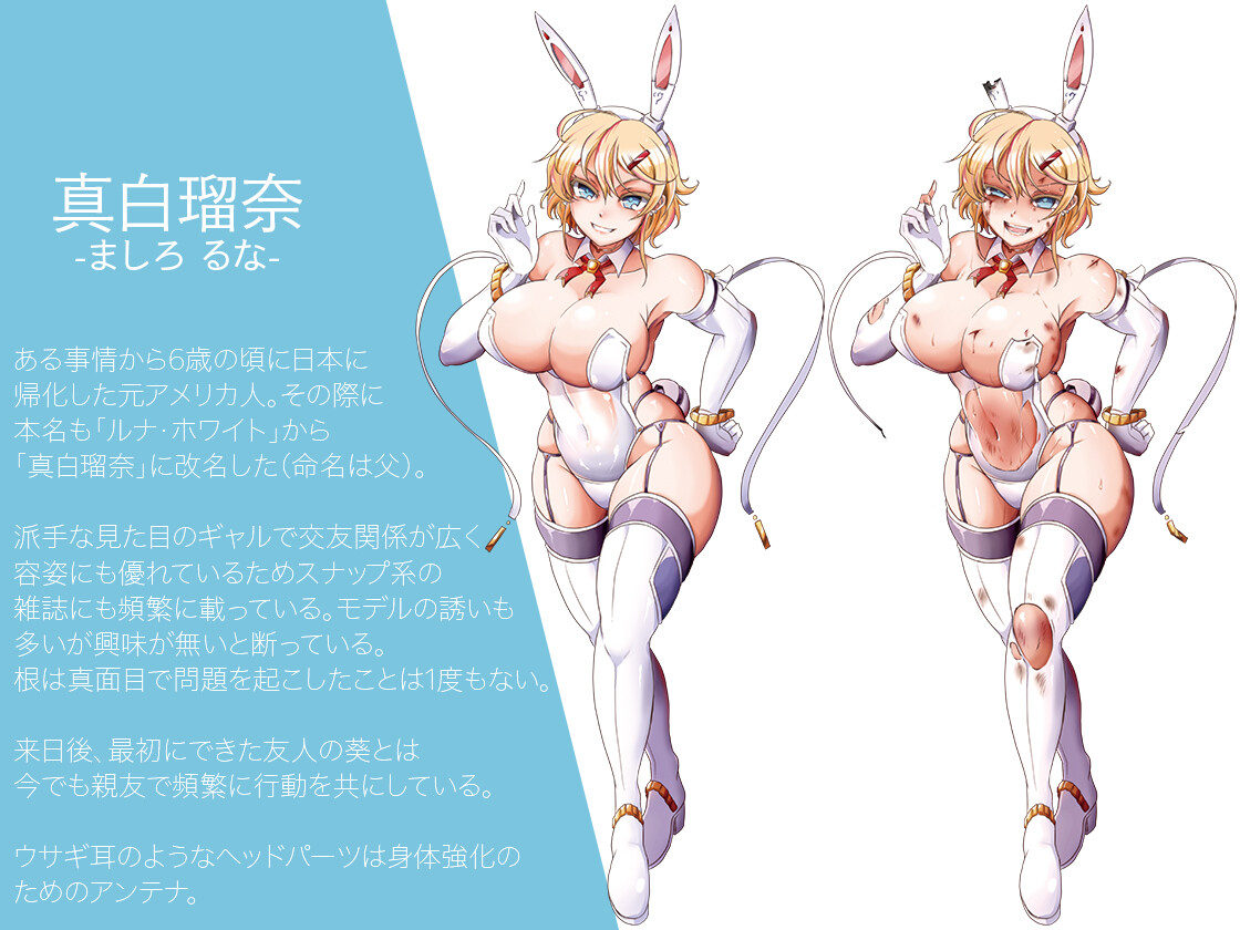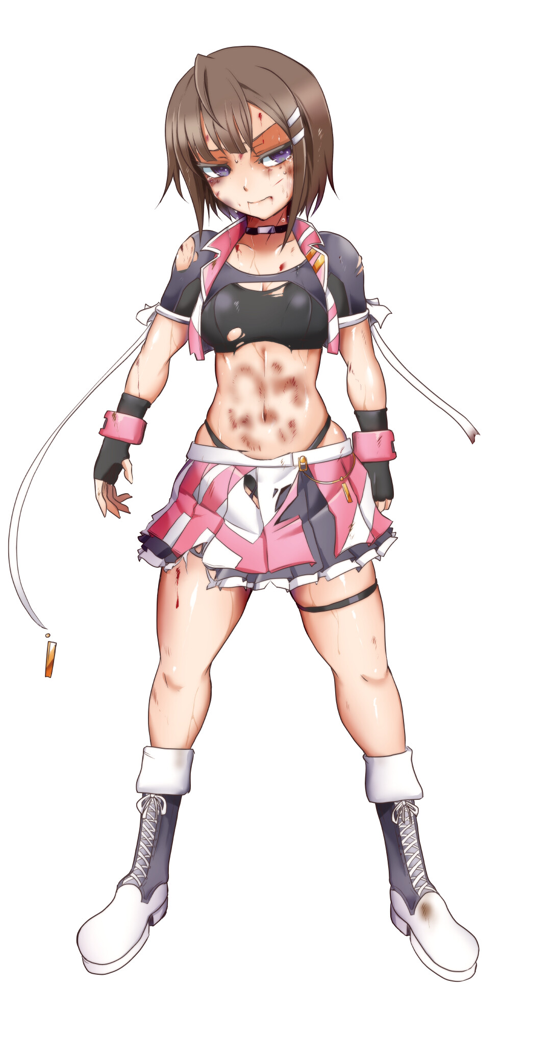 ピンクのインナーカラーが入った黒髪に、目の下には赤黒い隈のようなメイク。白を差し色としたピンクのプリーツスカートにショートジャケット。両手にはピンク色のポンポンを持ち、左手首には包帯が巻かれているという、なんともチグハグな見た目のキャラクターだった。